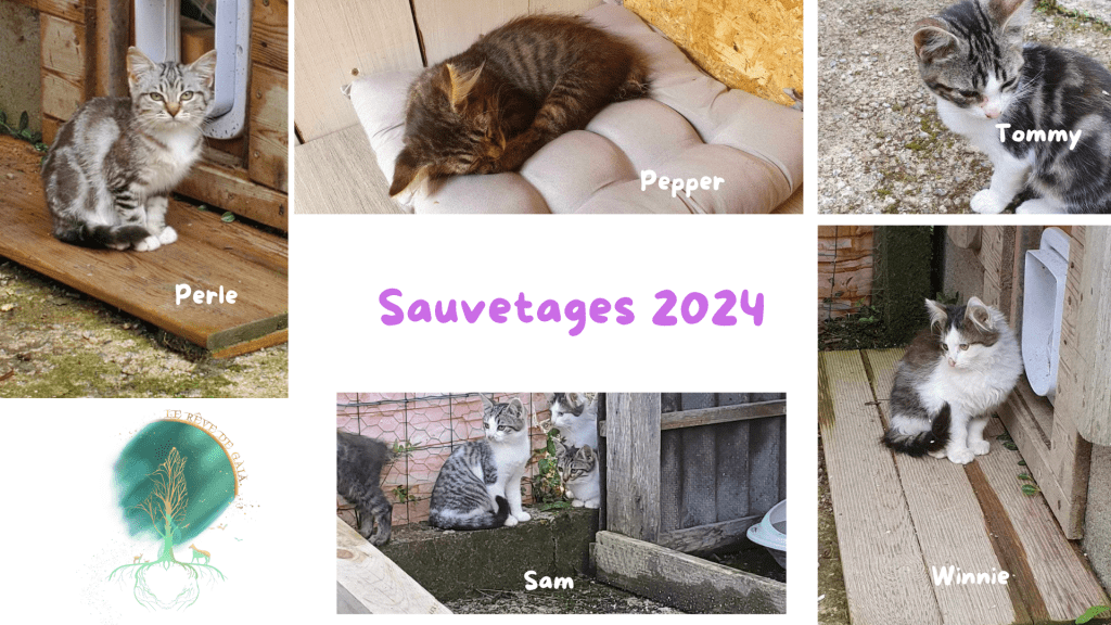Samantha, Gaspard et Samuel, . La maman sauvage a été stérilisée et les 3 chatons adoptés après avoir été vaccinés, et stérilisés.
